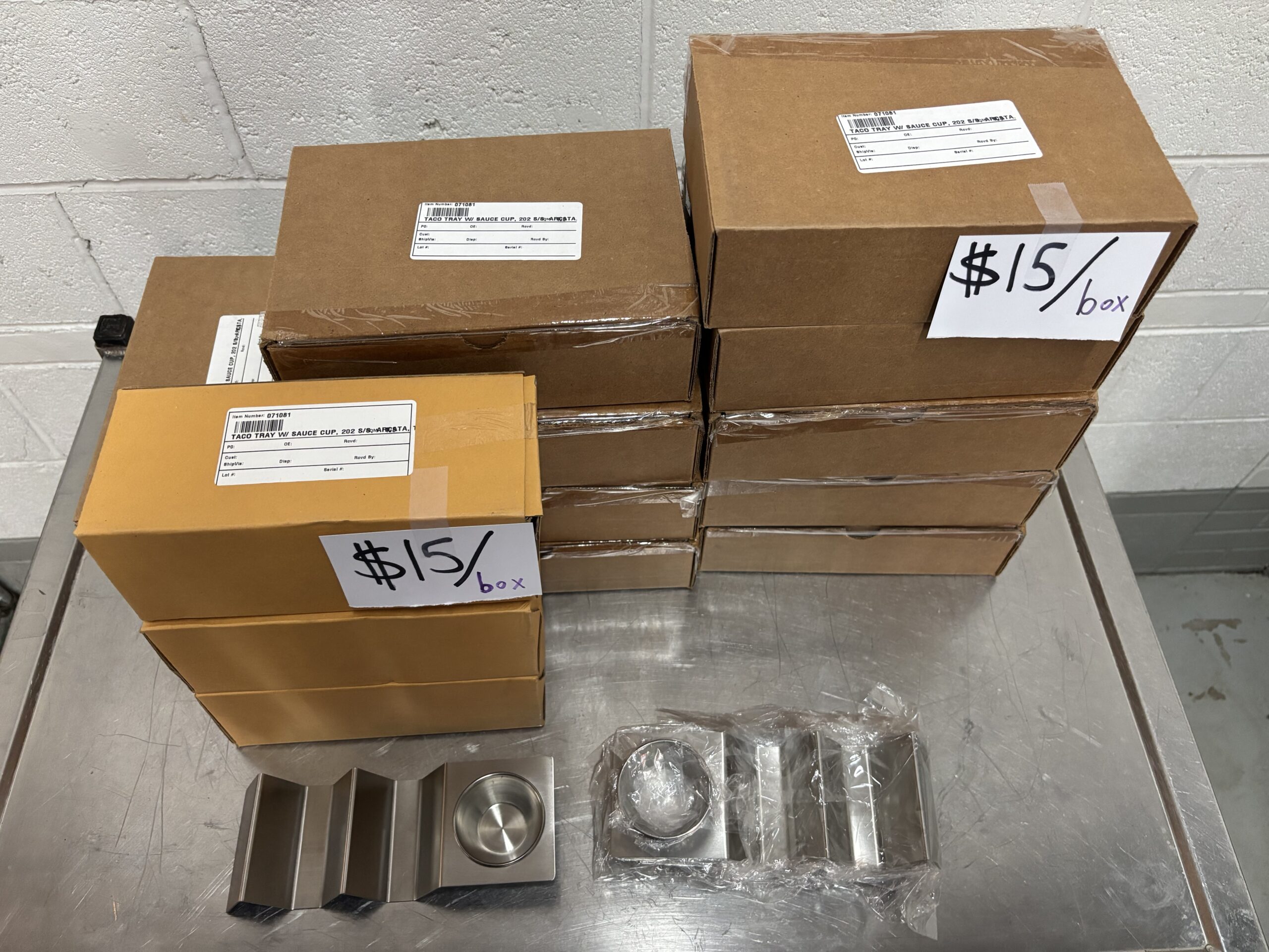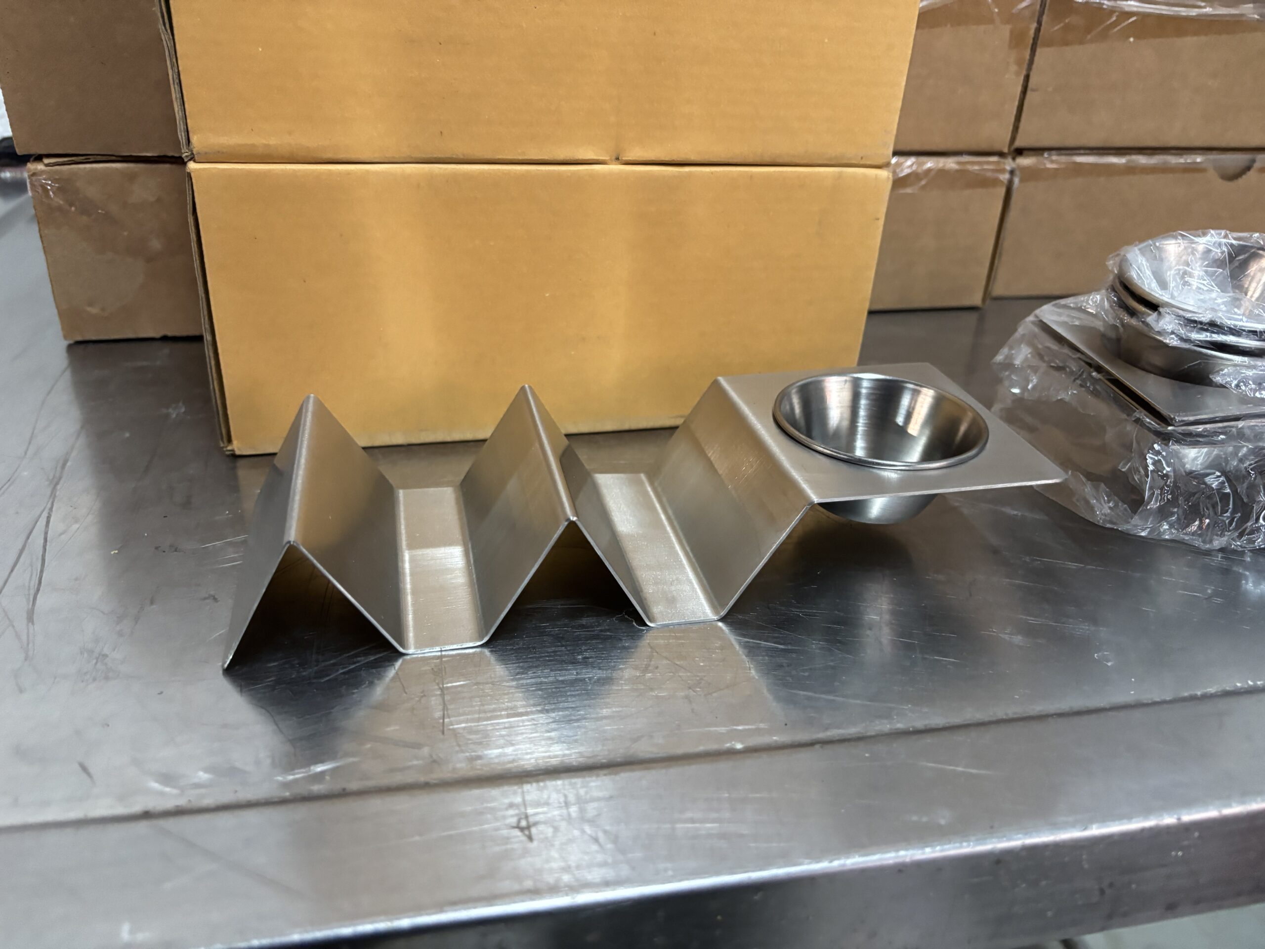 - utilizes an elevated design to fit two tacos and one ramekin per tray